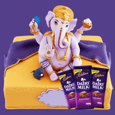 Celebrate Ganesh Chaturthi with our Modak Theme Fondant Cake, beautifully designed with edible high-quality fondant in a modak shape. This delicious cake captures the essence of the festival with its delicious taste. Perfect for offering to Lord Ganesha or sharing with loved ones. You will get 3 Cadbury Silk Chocolates 60gms along with this cake.