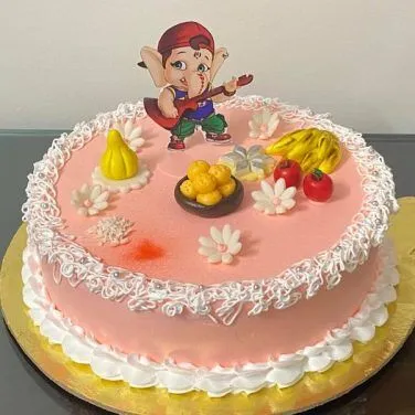 One of the best-selling cakes from Yummycake. Presenting our Happy Ganesh Chaturthi Cake, this cake is made 100% eggless in a round shape and with high-quality ingredients. All the cake is made and baked fresh from the oven and also comes with soft and moist layers of breads. Comes in a variety of flavors, it is decorated with a Lord Ganesha topper and some edible fondant details. A perfect cake for a memorable occasion.