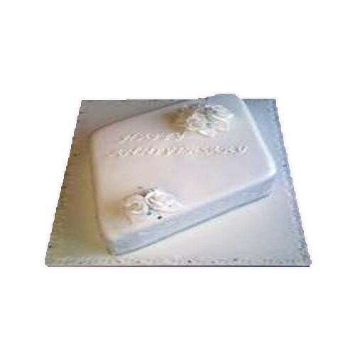 A perfectly designed elegant rectangle-shaped cake design, perfect for anniversaries, weddings, or formal events. It is decorated with a smooth white fondant finish, delicate floral accents, and a personalized message. This clean rectangular design makes it an ideal centerpiece for intimate gatherings or grand celebrations. This cake is made using premium ingredients, perfect for a touch of elegance to your celebration.